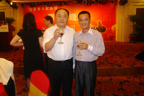 图一,在招待会上安徽省淮北市市长许崇信和西方多路公司钟情先生合照。