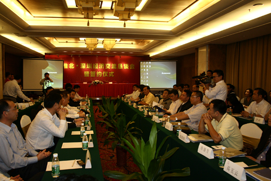 图三,安徽省淮北市和深圳市各企业在合同签约会上进行洽谈。
