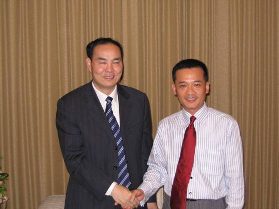 右)钟情先生亲切握手,并叮嘱尽快进入云南市场。